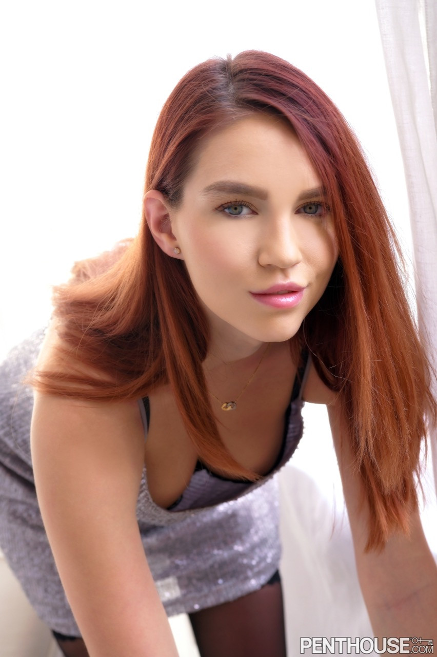 Leya Desantis was a Penthouse Pornstar and featured model in July 2025. Her measurements are 34-24-34. Leya Desantis has seductive blue eyes, fiery red hair, and natural breasts.